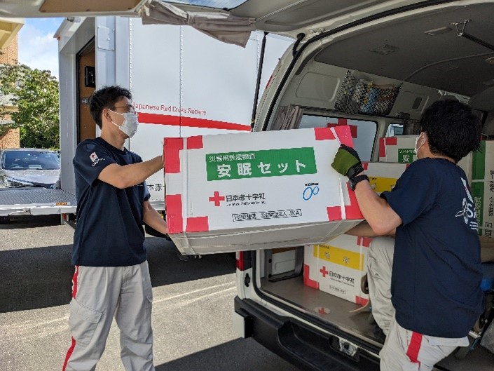 日本赤十字社を通じ救援物資(毛布・緊急セット・タオルケット)を富山県、山口県、福岡県、佐賀県、大分県の被災地域へ配布致しました。